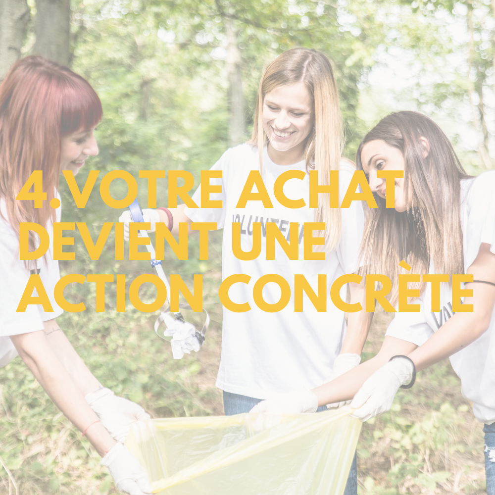 De cette façon, vous êtes assuré que la part de don générée par vos achats soutient des projets utiles, porteurs de sens et de résultats tangibles.