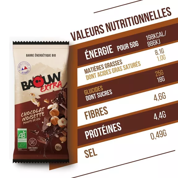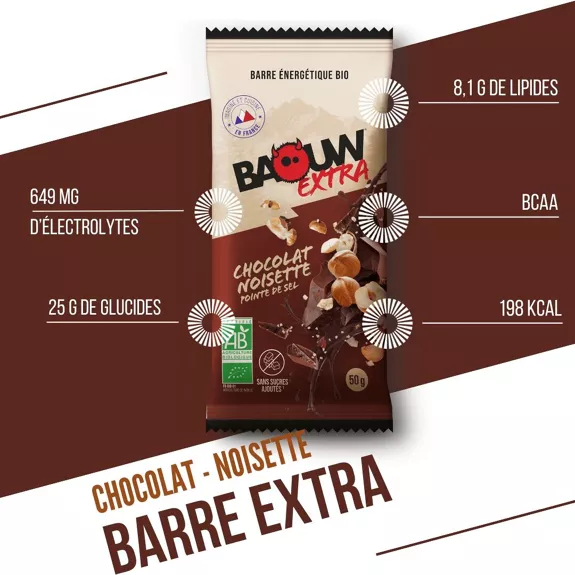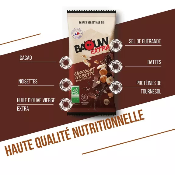 Quand la gourmandise rencontre la performance, ça donne cette barre énergétique Baouw Extra Chocolat – Noisette.