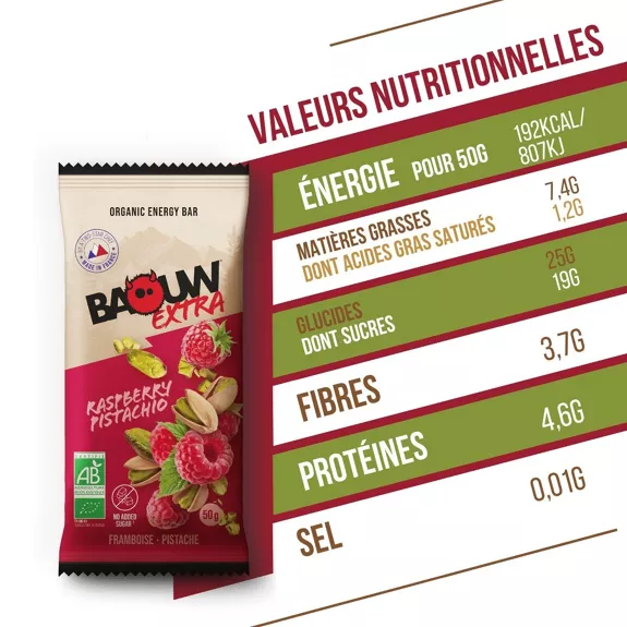 Barre énergétique Extra FRAMBOISE-PISTACHE – BAOUW 50g