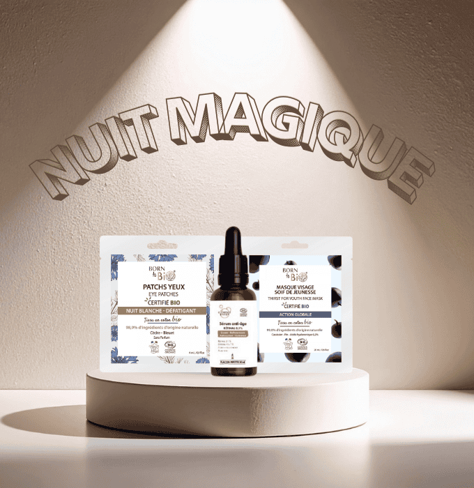 Le sérum anti-âge au rétinal agit en profondeur, les patchs défatigants réveillent le regard, et le masque hydratant apporte une sensation de confort immédiat.