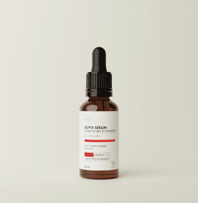 Le Super Sérum Longueurs & Pointes Clémence & Vivien est un sérum certifié bio à la texture ultra légère qui nourrit la fibre capillaire en profondeur, tout en laissant les cheveux souples et brillants.