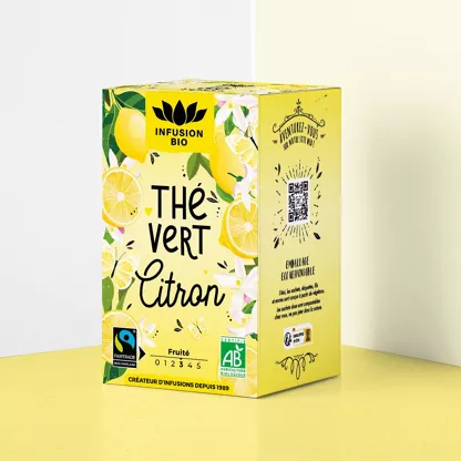 Le Thé Vert Citron Bio de Romon Nature, c’est un mélange lumineux et élégant : le thé vert déploie sa douceur herbacée, fluide et apaisante, sublimée par la vivacité citronnée de la citronnelle et des zestes de citron. L’extrait naturel de citron intensifie l’éclat zesté, tandis qu’une pointe de gingembre apporte un souffle subtil et tonique.